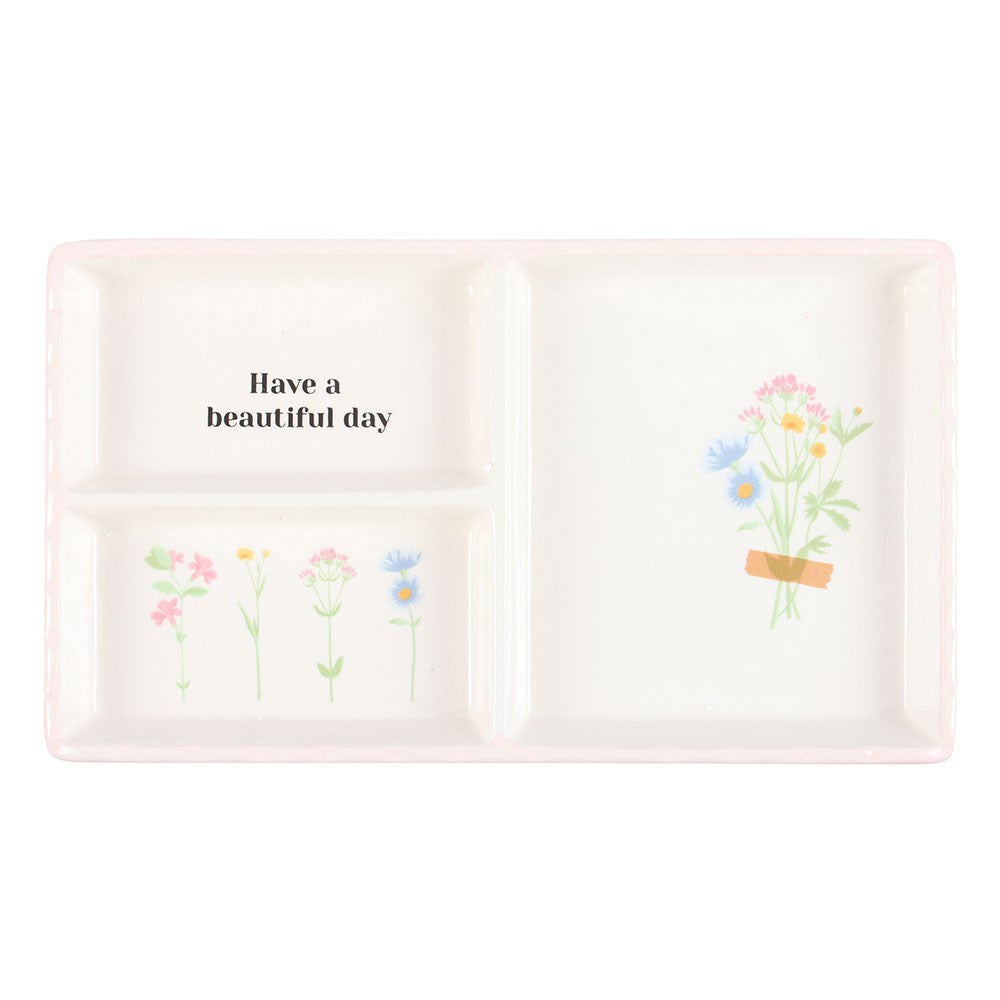 Dette vakre smykkebrettet er et must-have for alle som lever etter mantraet «alt på sin plass og en plass for alt». Med inndelte seksjoner og vakre blomsterdetaljer gir det en elegant oppbevaringsløsning for nøkler, smykker, briller og andre små skatter, slik at hjemmet forblir ryddig og stilfullt organisert.