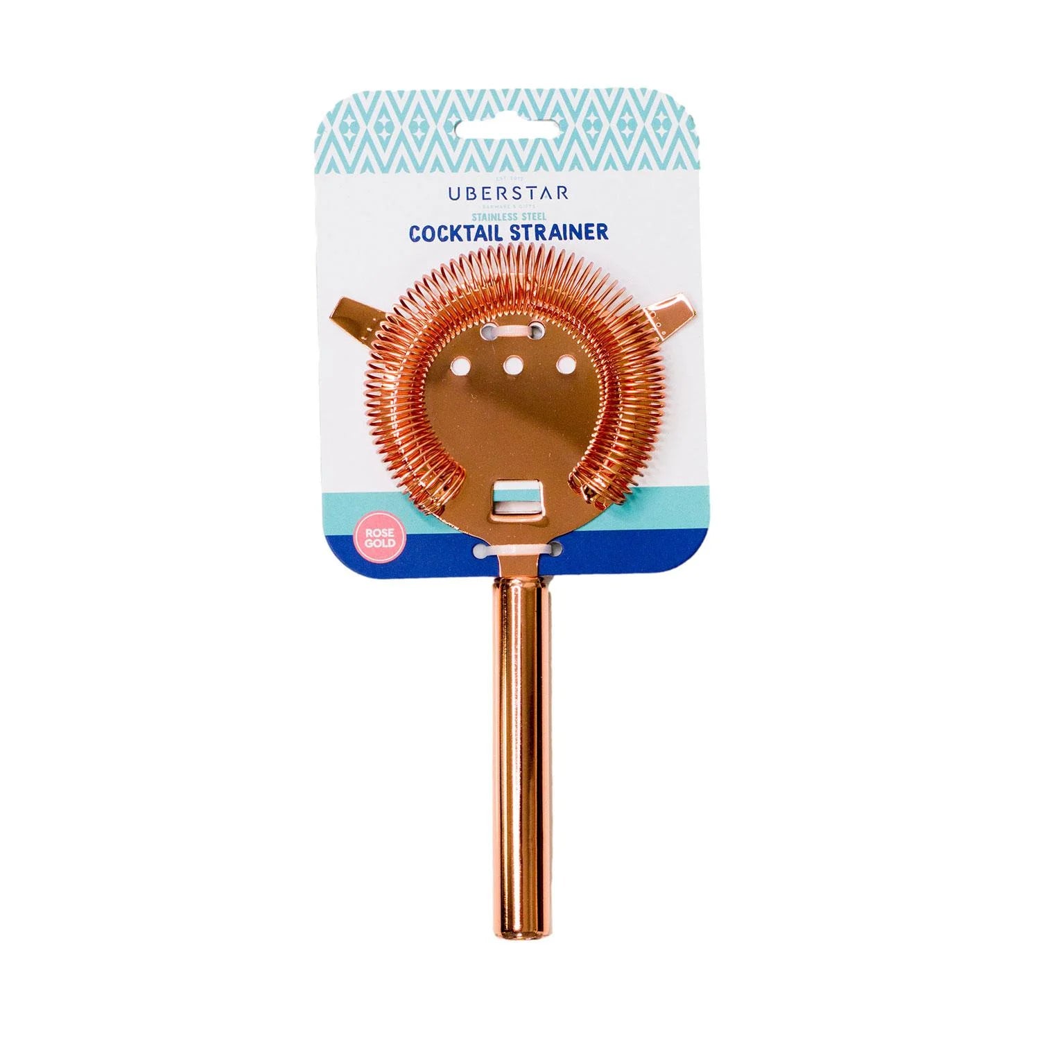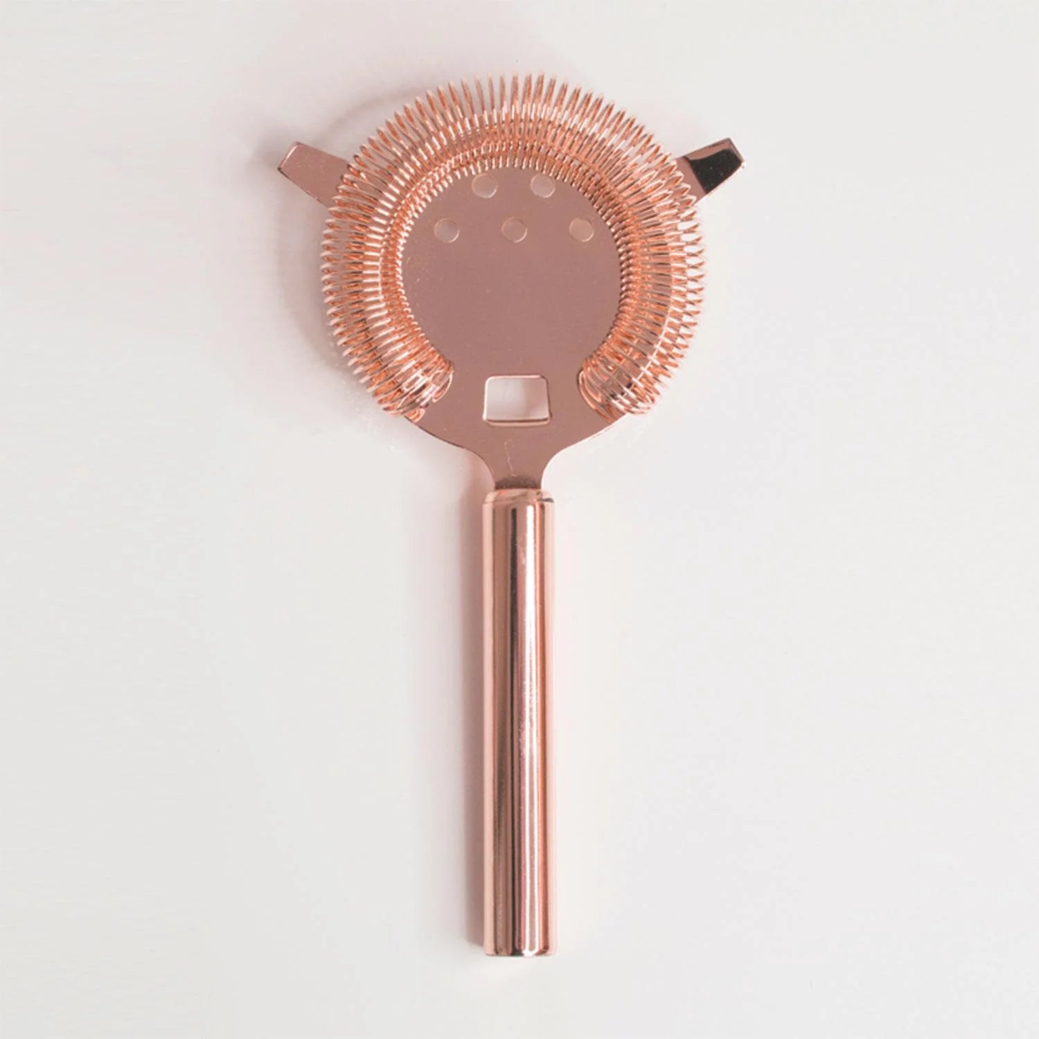 Ta din drinkmiksing til neste nivå med denne profesjonelle Hawthorne-silen i rosegull. Denne silen har et solid håndtak, stor overflate og en tett viklet fjær. Laget av 100% rustfritt stål med en polert rosegullfinish, sørger den for at du enkelt kan helle dine perfekt miksede drinker. Den tett viklede fjæren passer perfekt i mikseglasset eller cocktailshakeren, og de doble "ørene" gjør det lett å plassere for en jevn helling. Vaskes for hånd for å holde silen i topp stand.