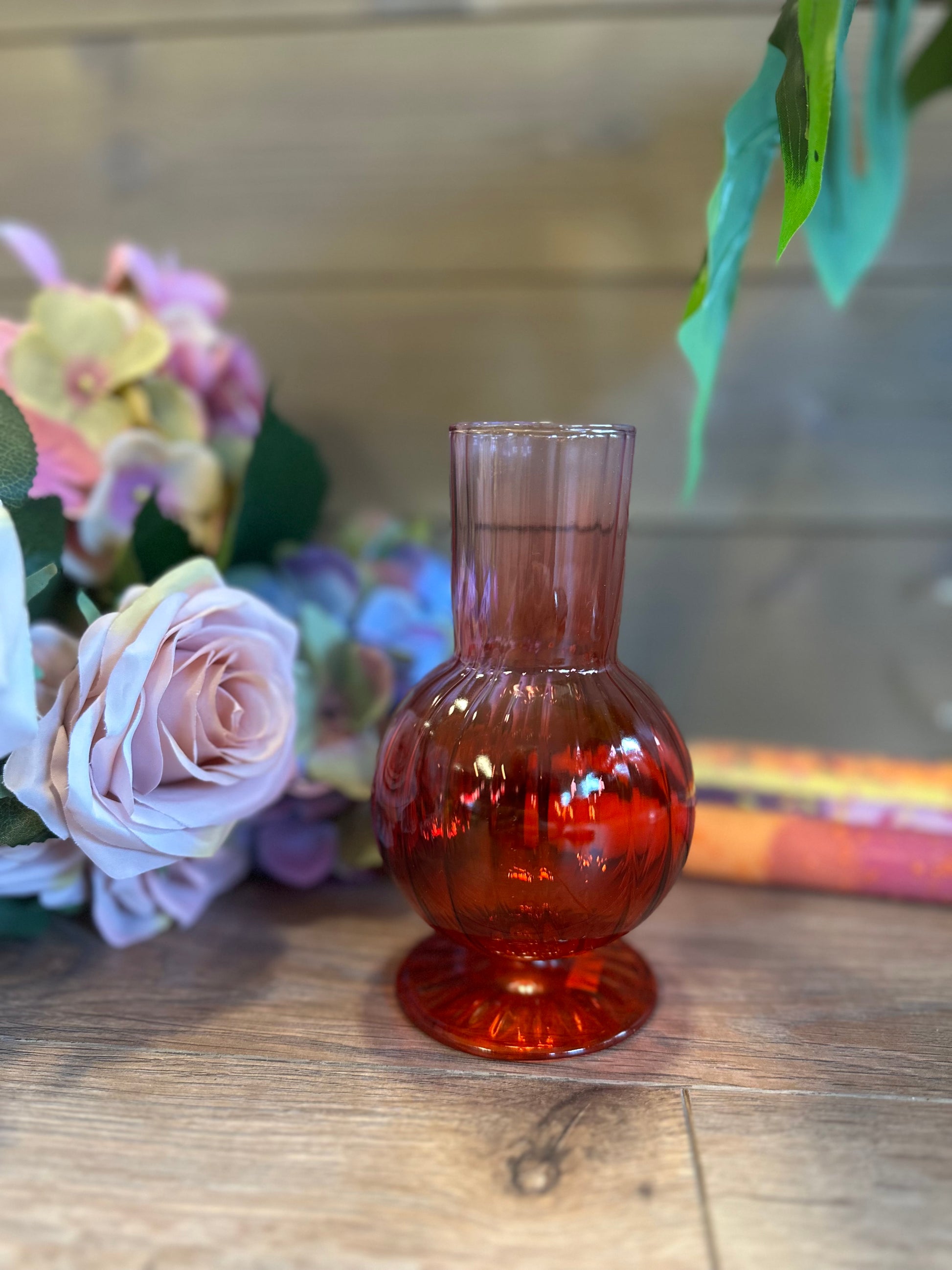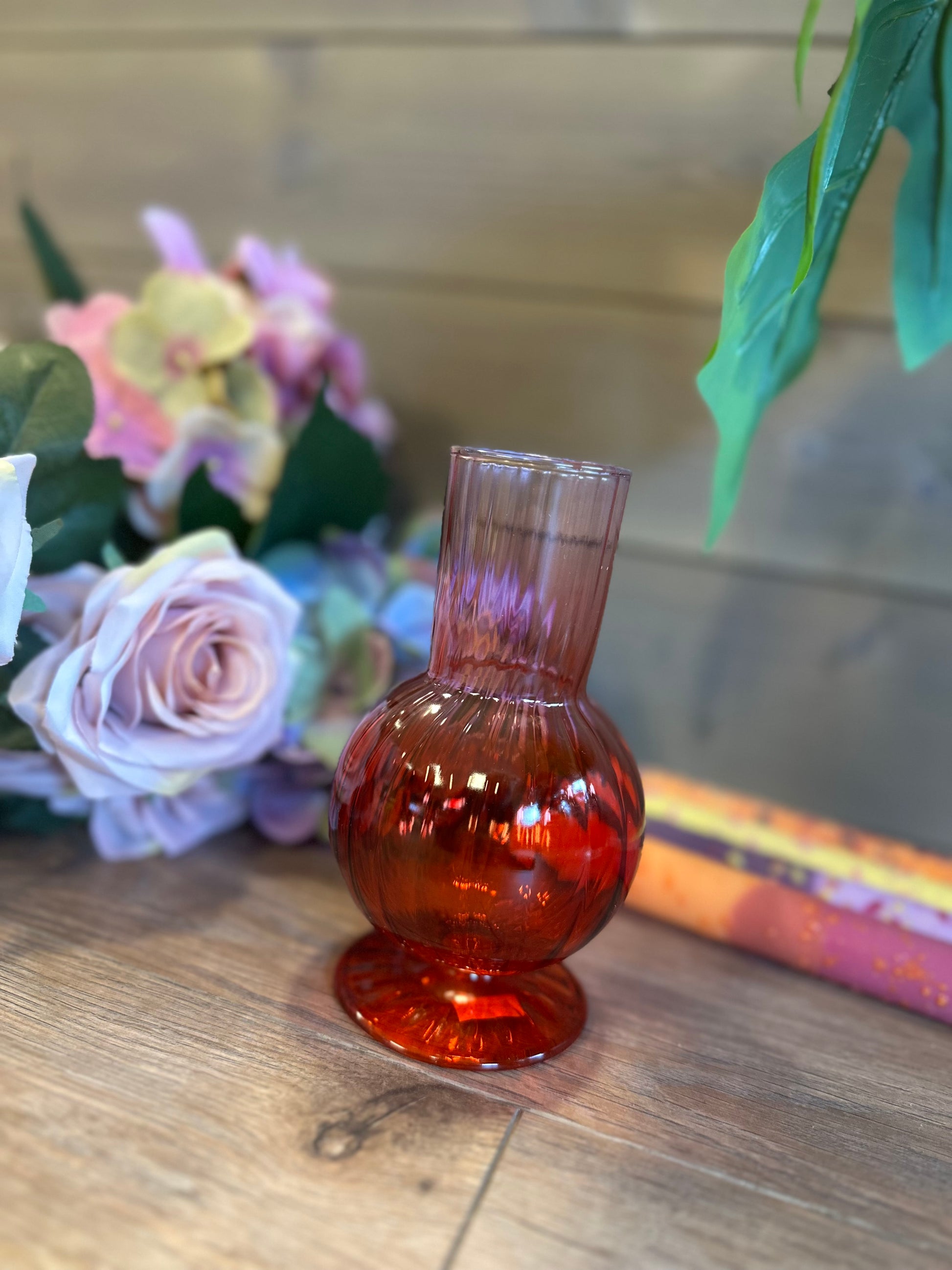 Liten, men full av karakter! Denne dekorative glassvasen fra Gift Company kommer i en dyp rød farge med vakker gradient-effekt og elegant sokkel. Perfekt til én stilk, tørkede blomster eller bare som en fargerik detalj i interiøret.