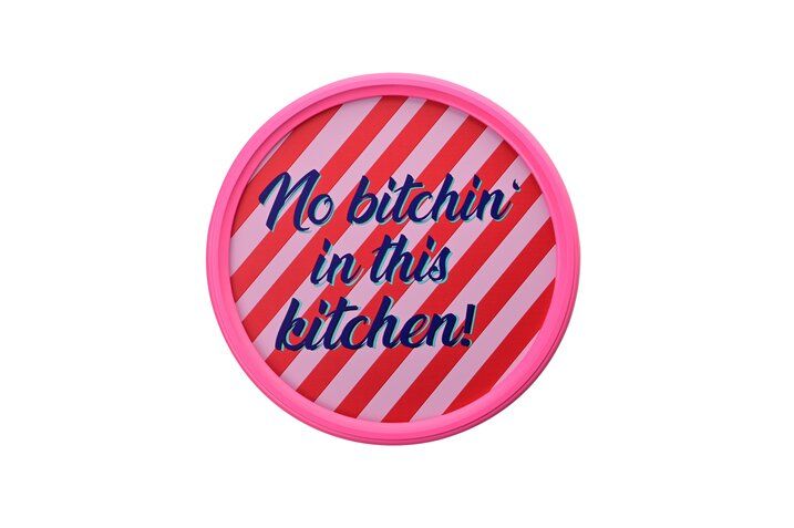 Design: Rundt skilt med teksten “No bitchin’ in this kitchen!”