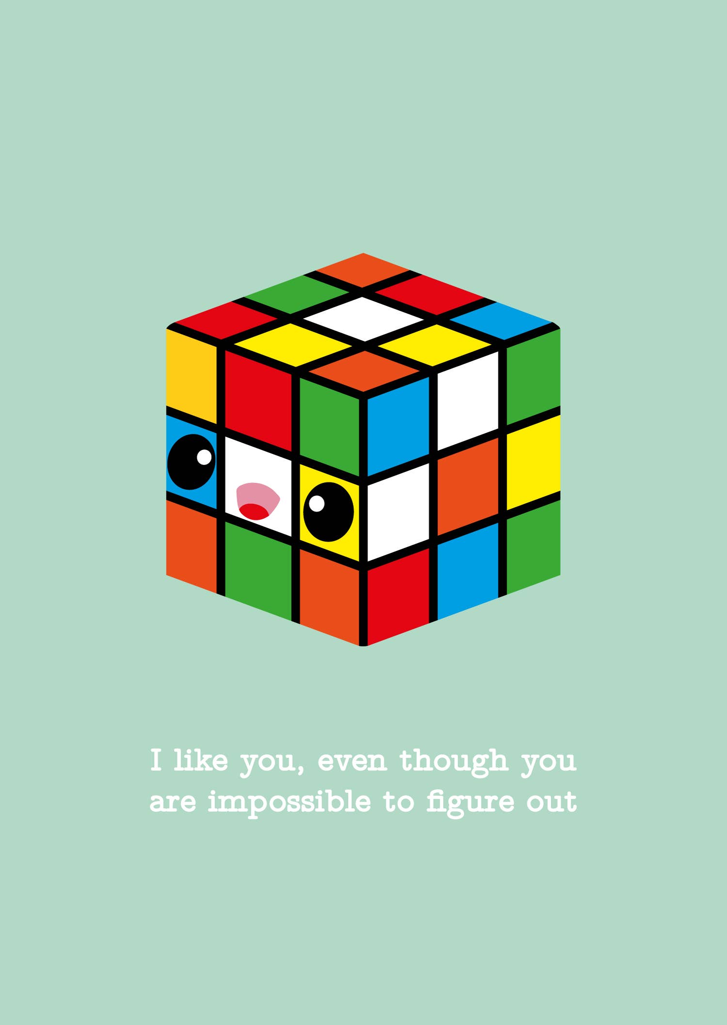 Let someone know how special they are to you with our unique Rubik's Cube card! This card is perfect for that special someone who is a little mysterious, but absolutely irresistible. Our Rubik's Cube card with the playful image of the iconic puzzle is a real eye-catcher. The text "I like you, even though you are impossible to figure out" makes it a great choice for anyone who loves an original and funny message. Additional Information The Rubik's Cube card with the text "I like you, even though you are impossible to figure out" in the HIP series is available in A6 format (105 mm x 148 mm). Matte paper with a weight of 400 g/m² is used, which makes the card sturdy and resistant to impact. The print is double-sided and in full colour, with high-quality print quality. This item will be shipped the next business day, provided the item is in stock. Have fun shopping!