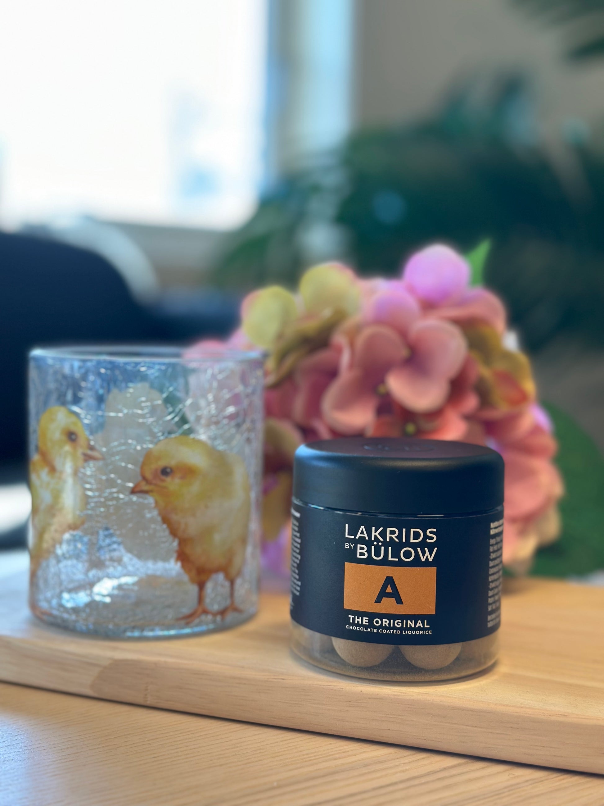 A The Original fra Lakrids by Bülow. A - THE ORIGINAL var det første produktet som ble utviklet da Johan Bülow ble inspirert til å overtrekke lakris med sjokolade - noe som da var helt ukjent i Danmark. Folk var først skeptiske til ideen, men det populære produktet A - THE ORIGINAL så snart dagens lys. Mange mener at kombinasjonen av søt lakris, eksklusiv melkesjokolade og fint lakrispulver er vanedannende fra første bit.
