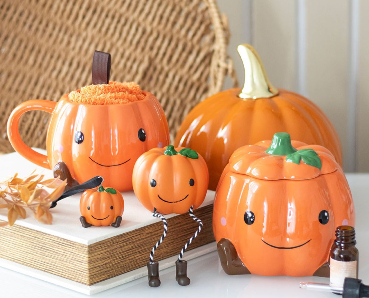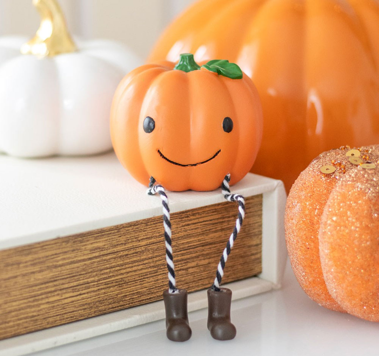 Denne sĂžte gresskar-figuren med dinglende bein og stripete strĂžmper sprer god stemning hvor enn den sitter. Perfekt pĂ„ peishylla, i vinduskarmen eller som en liten overraskelse til en Halloween-elsker med sans for det koselige! Laget i resin og full av sjarm đ§Ą